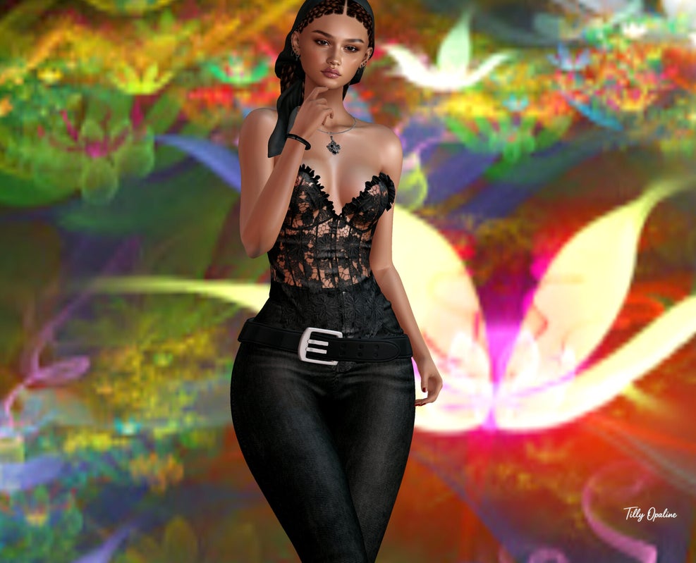 CLELIA outfit by AXE is composed by pants, lace top, belt and heels. It is available for LaraX, Legacy, Nhumana and Reborn. Shoes are available for Belleza Classic and Curvy, Erika, Kupra, Legacy, Maitreya, Peach and Reborn.